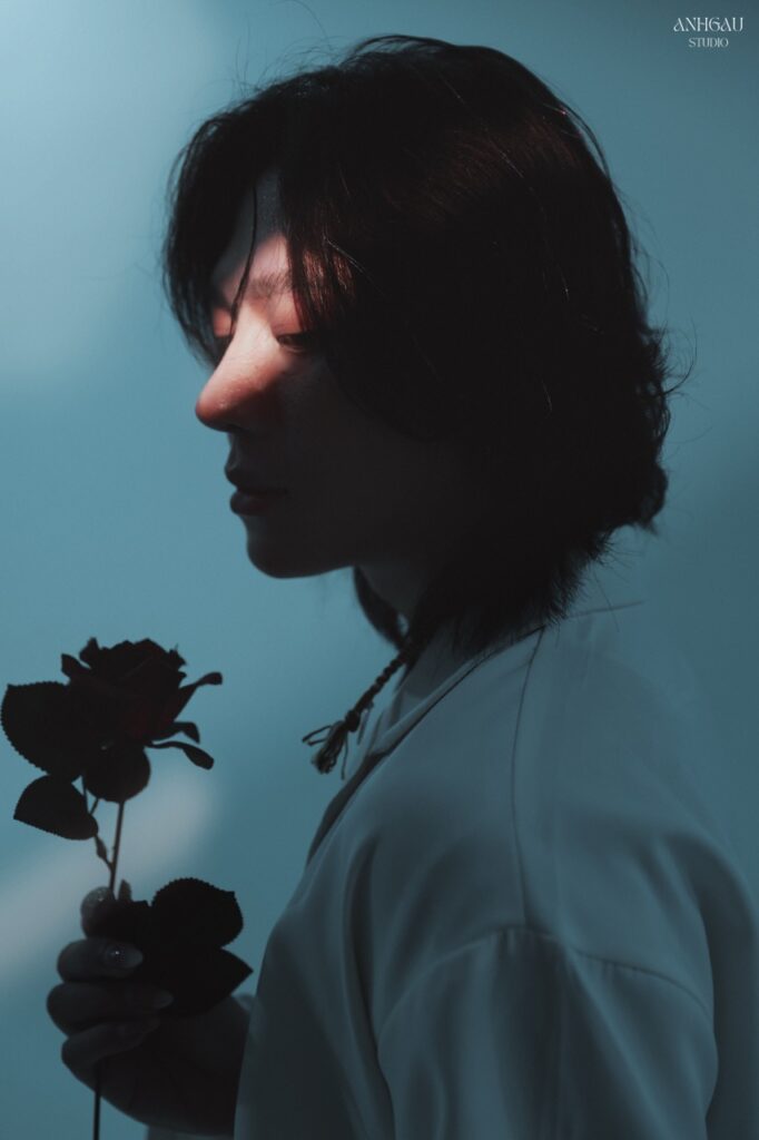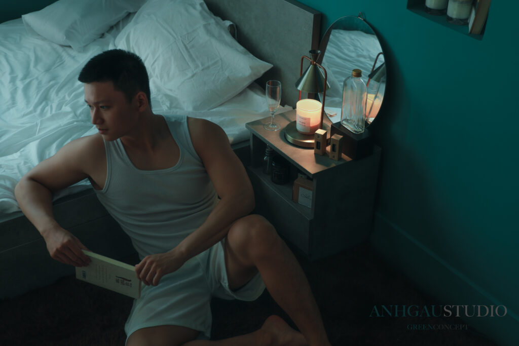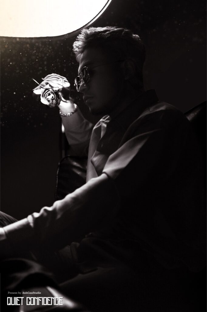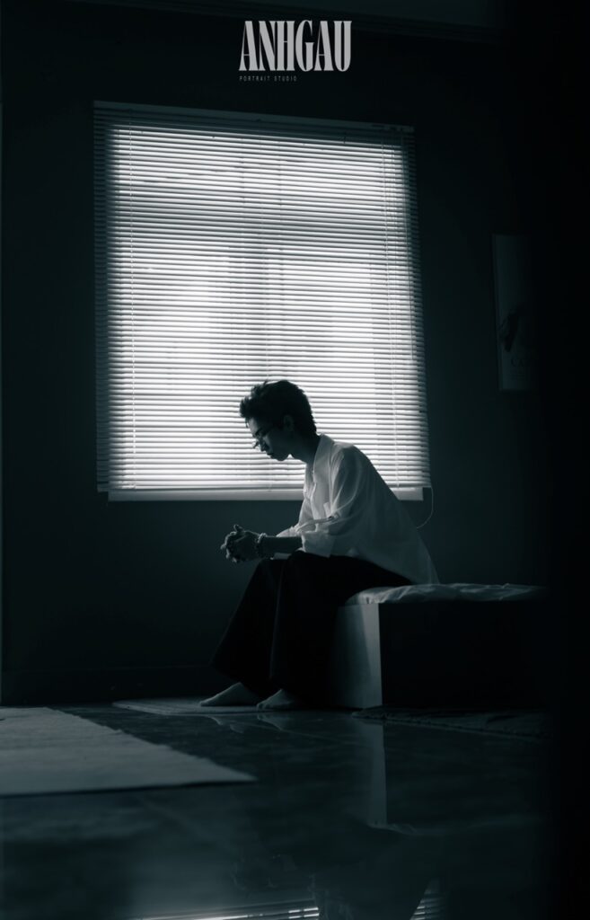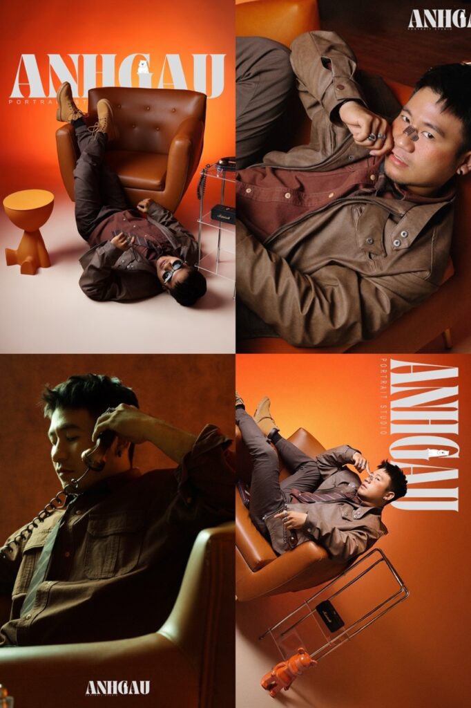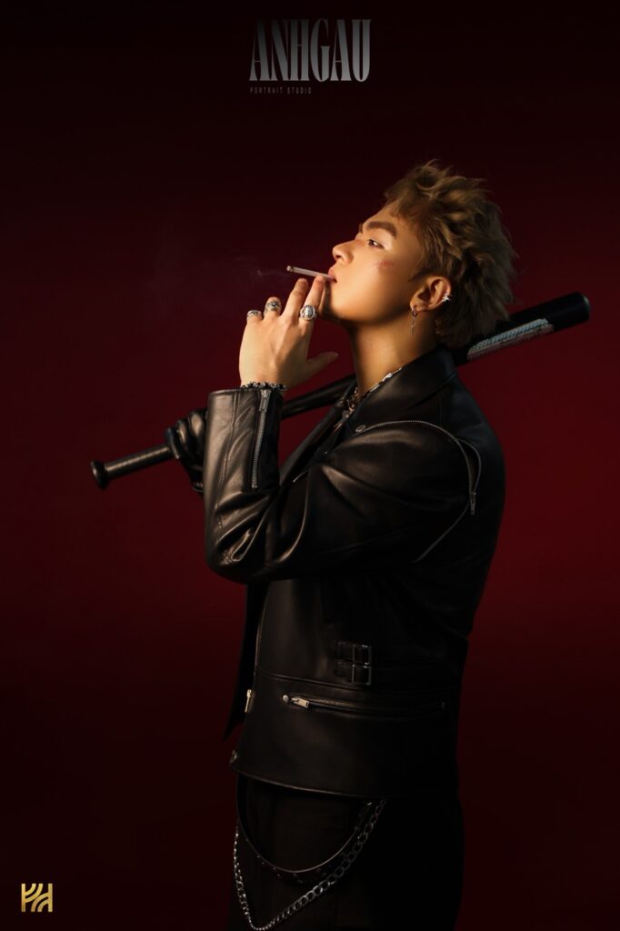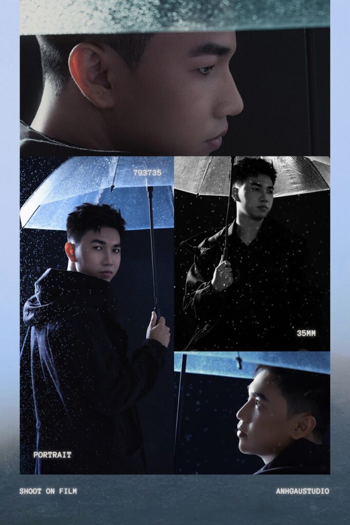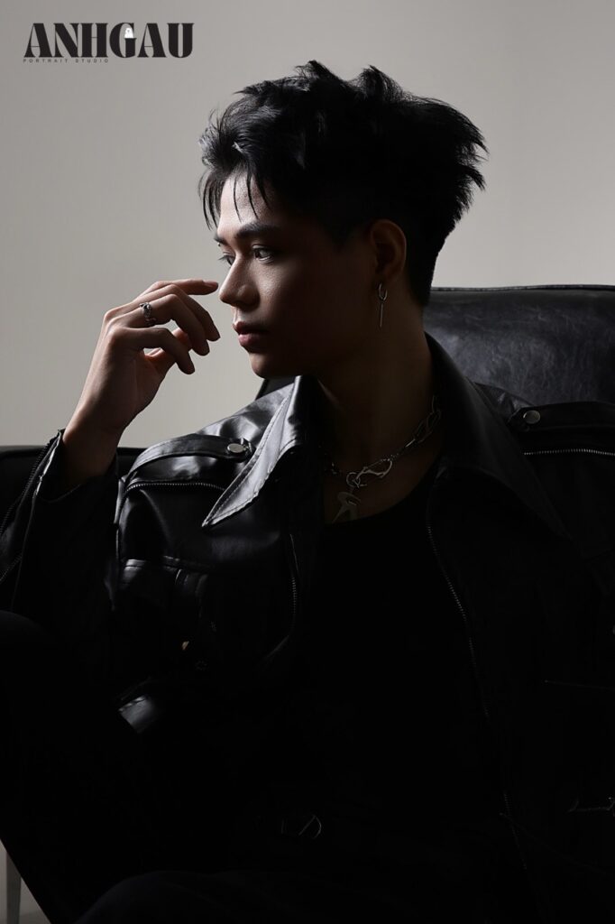 – Chụp 1/2 sáng tối ngầu, nghĩa là đèn chỉ sáng nửa mặt, giúp ngầu, cá tính hơn, nhưng da sẽ không còn mịn, sẽ chững chạc, đứng tuổi hơn