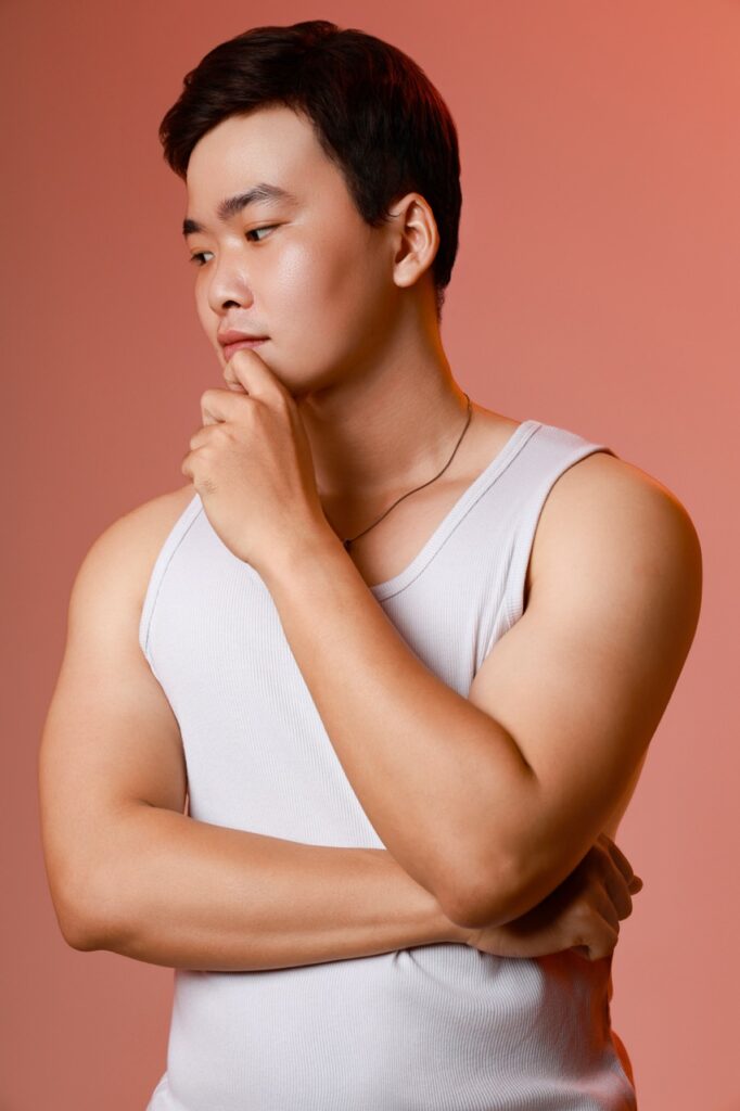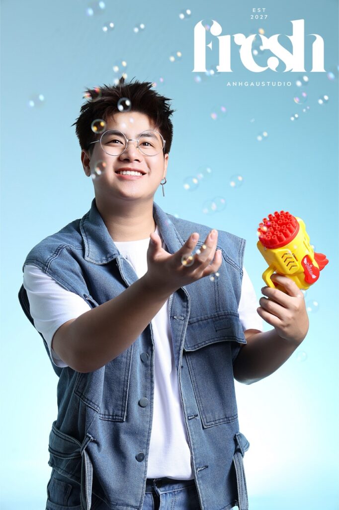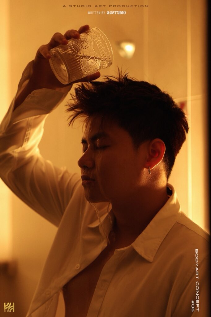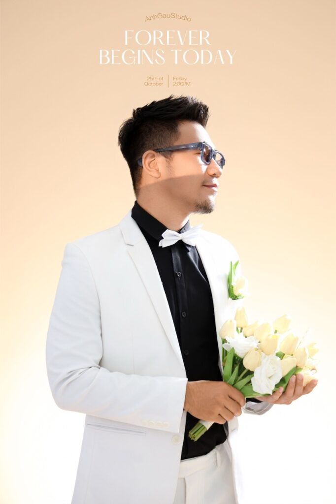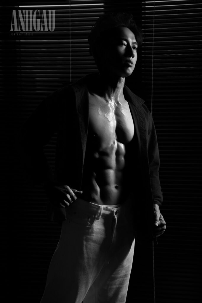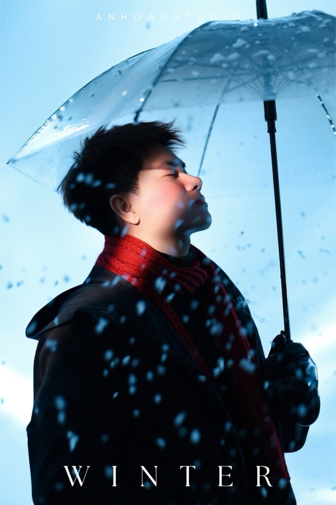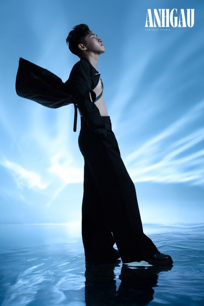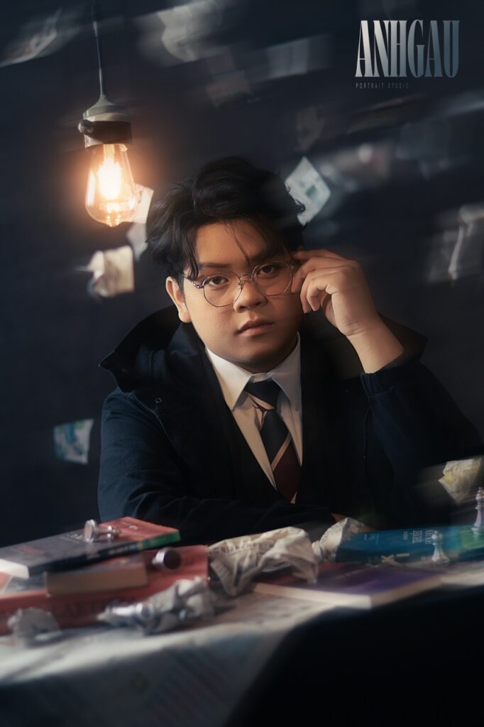 – Chụp 1/2 sáng tối ngầu, nghĩa là đèn chỉ sáng nửa mặt, giúp ngầu, cá tính hơn, nhưng da sẽ không còn mịn, sẽ chững chạc, đứng tuổi hơn