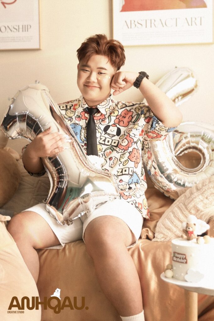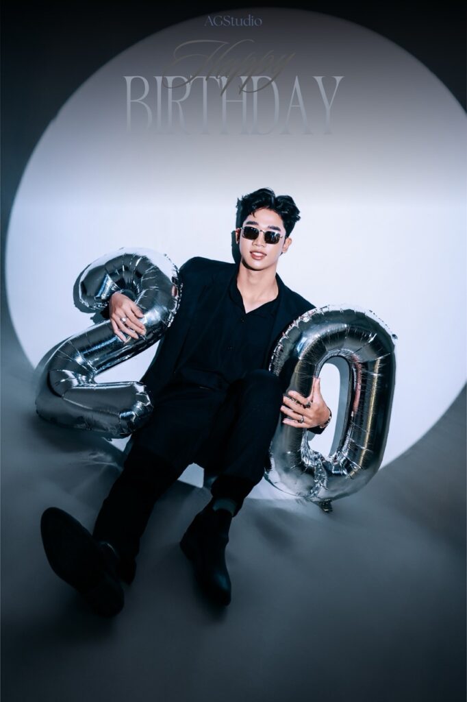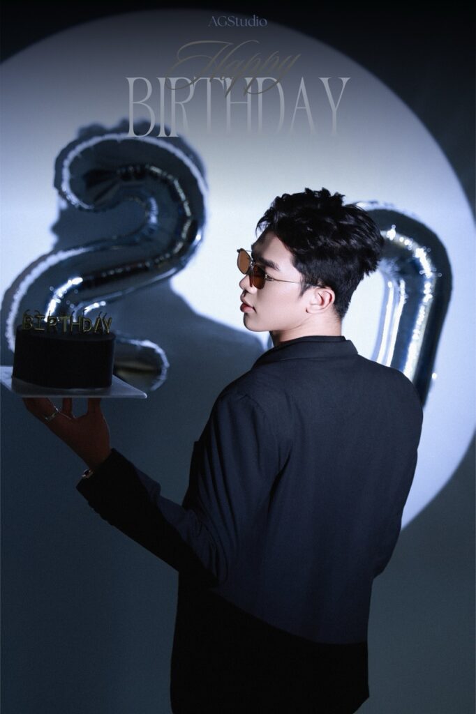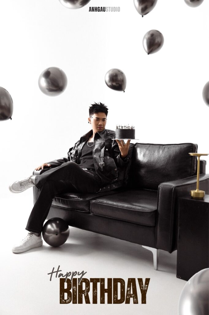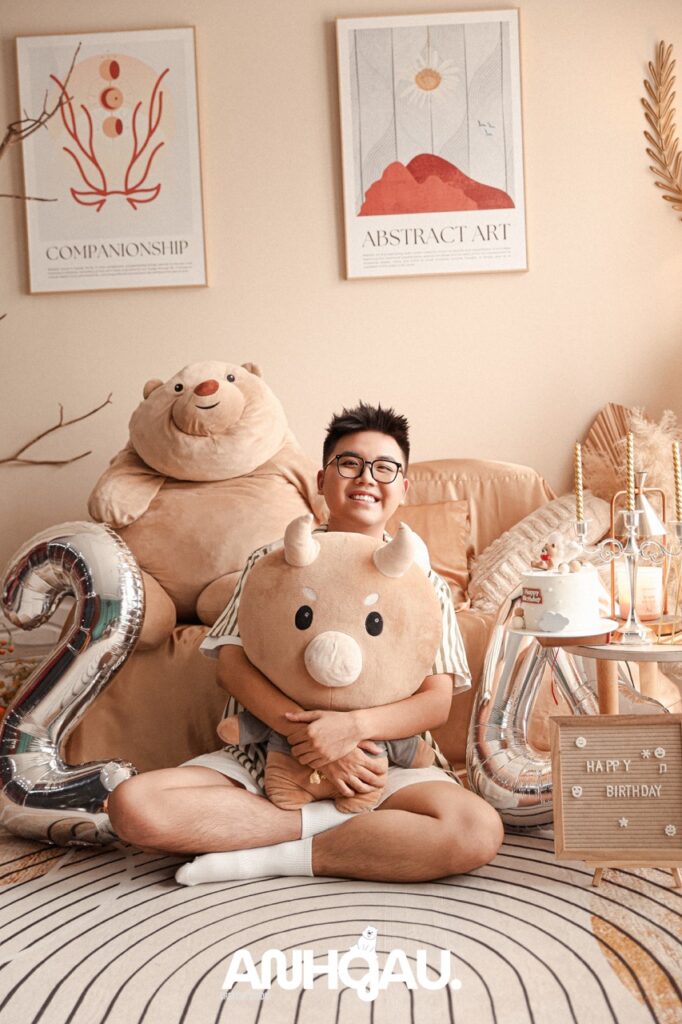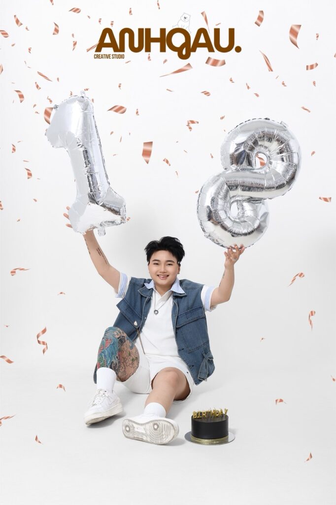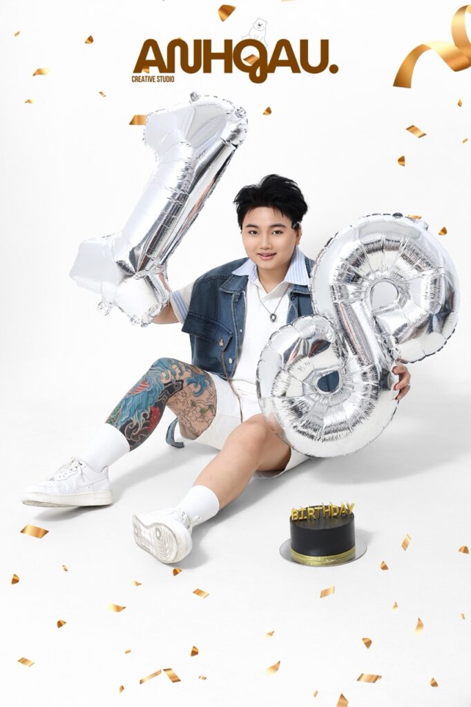 Chụp ảnh sinh nhật studio, có set up sinh nhật, bóng tuổi, bánh kem,…